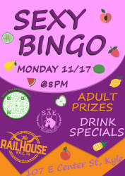 Hey ladies! Come check out our fresh sexy bingo night hosted by Killer Kim down at the Railhouse Bar. We've got lots of fun adult prizes for our winners!